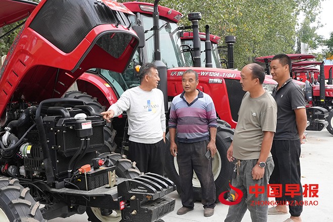 中国早报 河南讯(特约记者 李新义)10月13日,在河南省开封市尉氏县农机市场邢庄乡农民在选购拖拉机。眼下,豫东平原麦播即将全面开始,尉氏县各乡村农民正在对原有农机进行检修、保养和调试或选购新型农机,确保麦播生产顺利进行。
