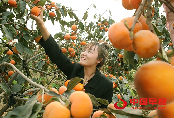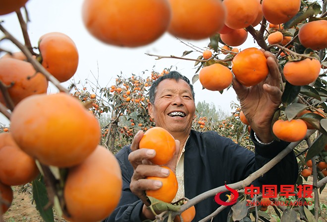 赵庄村柿子种植园内,村民采摘柿子准备供应市场。