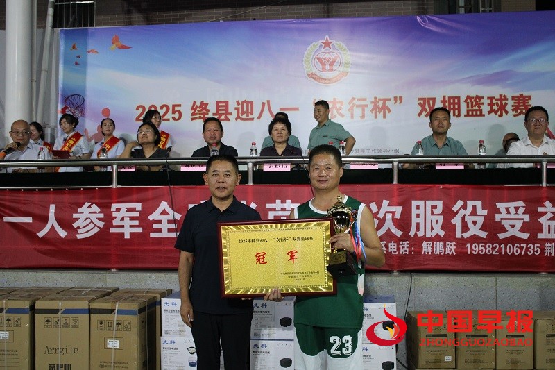 中国早报山西讯(通讯员 张广瑞)7月29日晚,由山西省绛县退役军人事务局组织、绛县农业银行赞助的全县迎八一“农行杯”双拥篮球比赛圆满落幕,绛县退役军人事务局、绛县农业银行、绛县健康医院代表队分获冠、亚、季军。