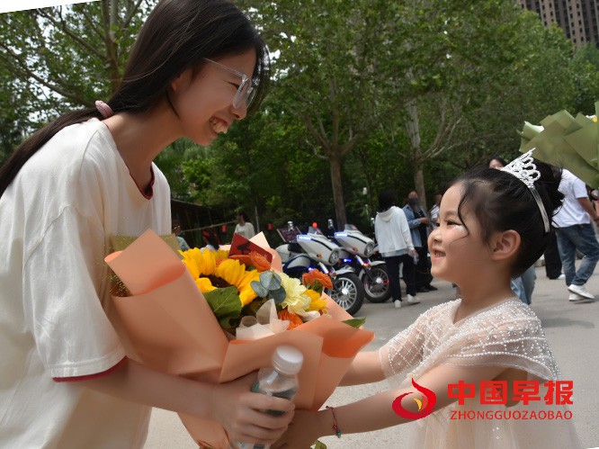 更添几分温馨与童趣的是,人群中有小小的身影也在执着等待。一位稚气未脱的小外甥女,小手紧紧攥着一束精心挑选的鲜花,踮着脚尖,在人群中努力寻找着刚刚结束高考征途的舅舅。那份纯真的期盼,为紧张的高考结束时刻注入了浓浓的亲情暖流,引得周围家长会心一笑。