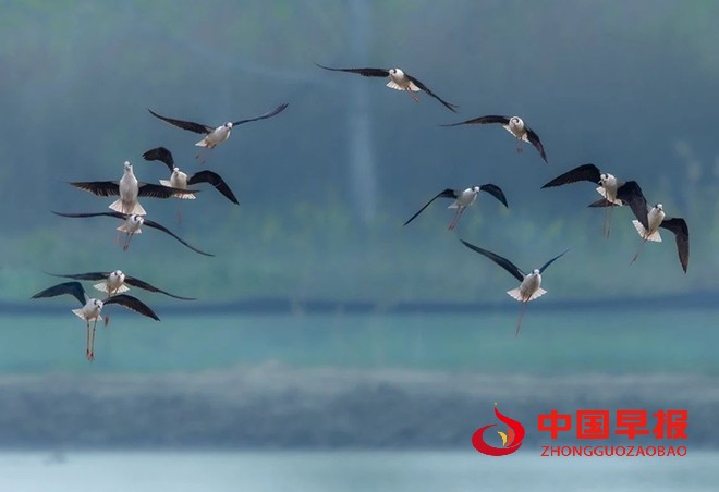 中国早报 安徽讯(记者 赵玉虎 通讯员 赵雪华)4月6日,安徽省淮北市湖面上,阳光轻柔波光粼粼,一群水鸟正惬意栖息。瞬间抓住了我的目光,带来了意外之喜。它们亭亭玉立在浅水域,身姿格外修长,黑白交织的羽衣,简约又尽显高雅,恰似出自顶级设计师之手的精美礼服,在日光下闪烁着柔和光泽。那双腿细长且鲜艳,如同一缕缕随风飘动的红绫,在浅水中轻轻点踏,每一个动作都带着独有的韵律,仿佛在与水泽轻声细语,谱写着只属于它们的浪漫篇章。
